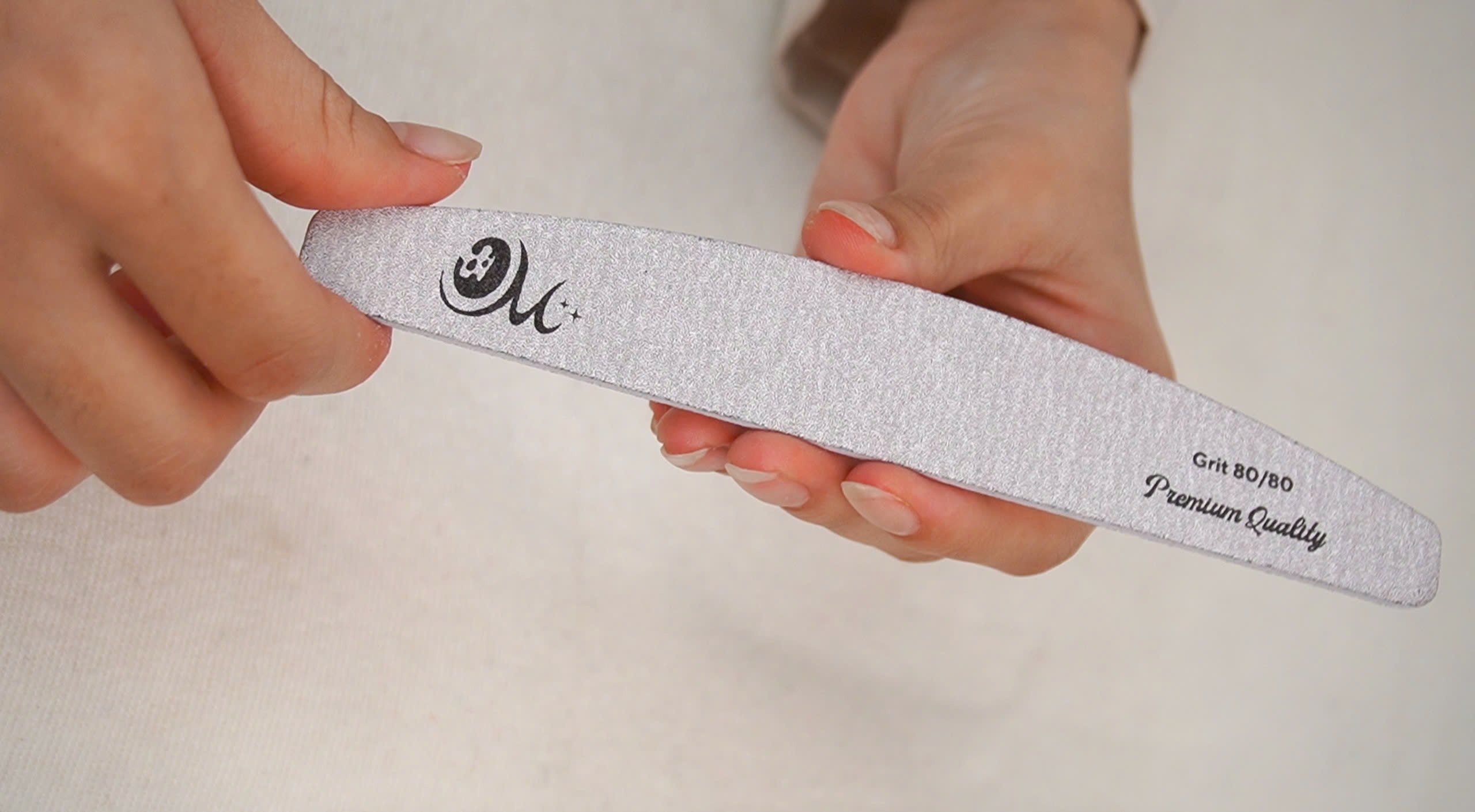 The grit of a nail file determines how rough or smooth the surface of the file is, and this is critical for achieving different nail shapes and finishes. Our Half Moon Nail File features a dual 80/80 grit, meaning it has a coarse side for shaping and a finer side for smoothing. The 80-grit side is perfect for filing down thick, tough nails or shaping the overall structure of acrylic or gel nails, while the 80-grit smoothing side helps refine edges and remove roughness.